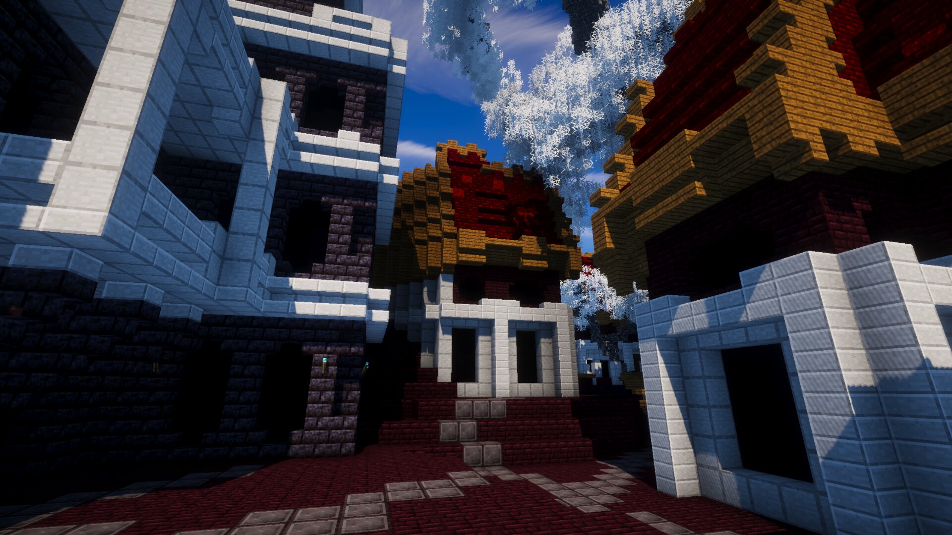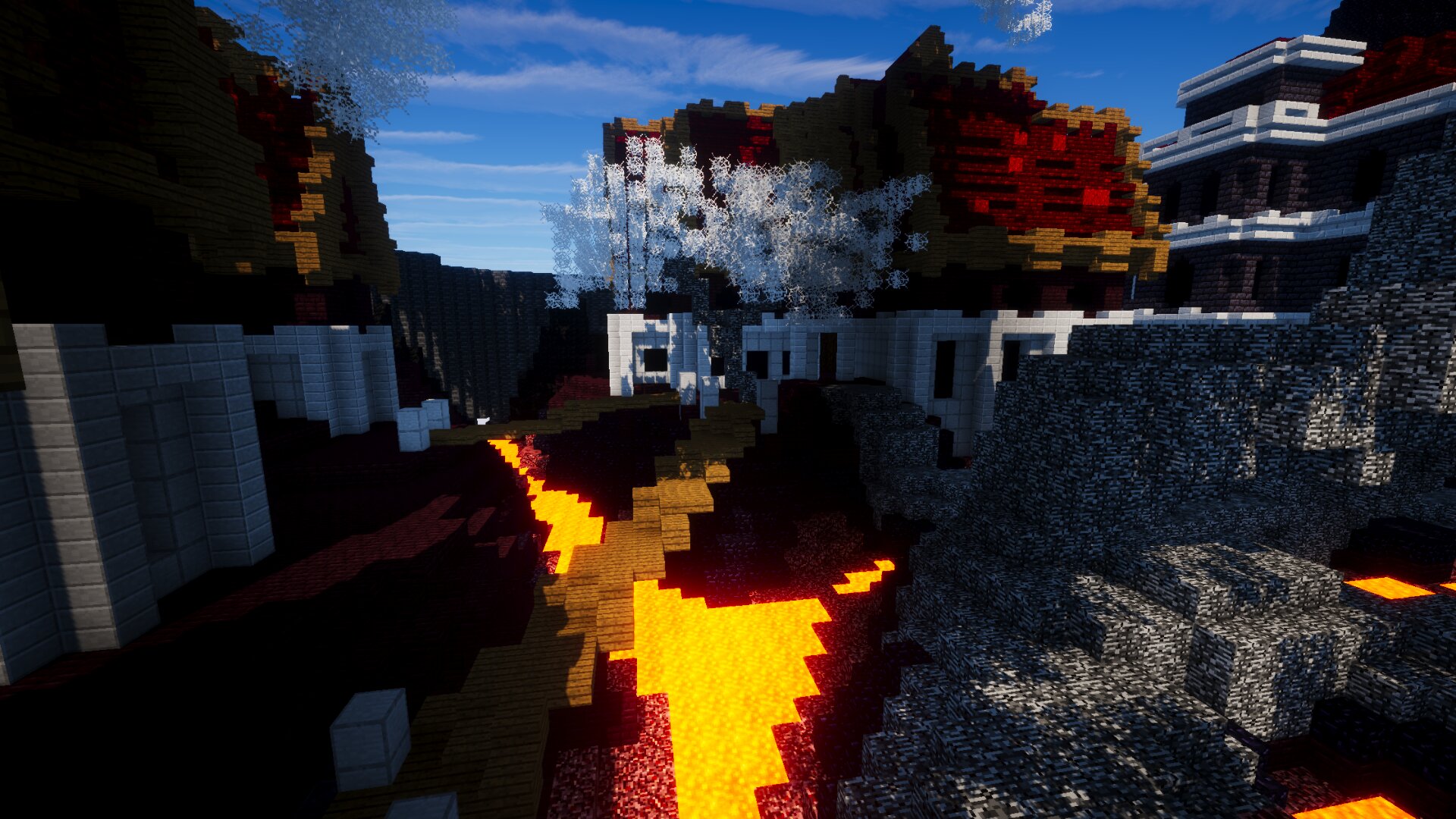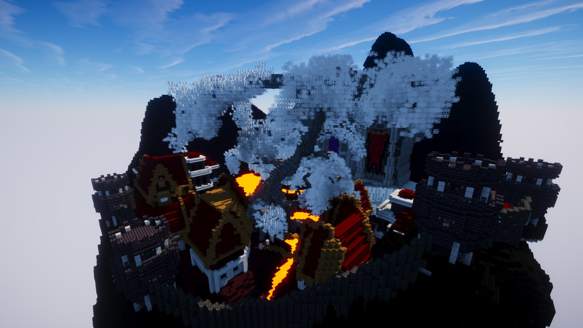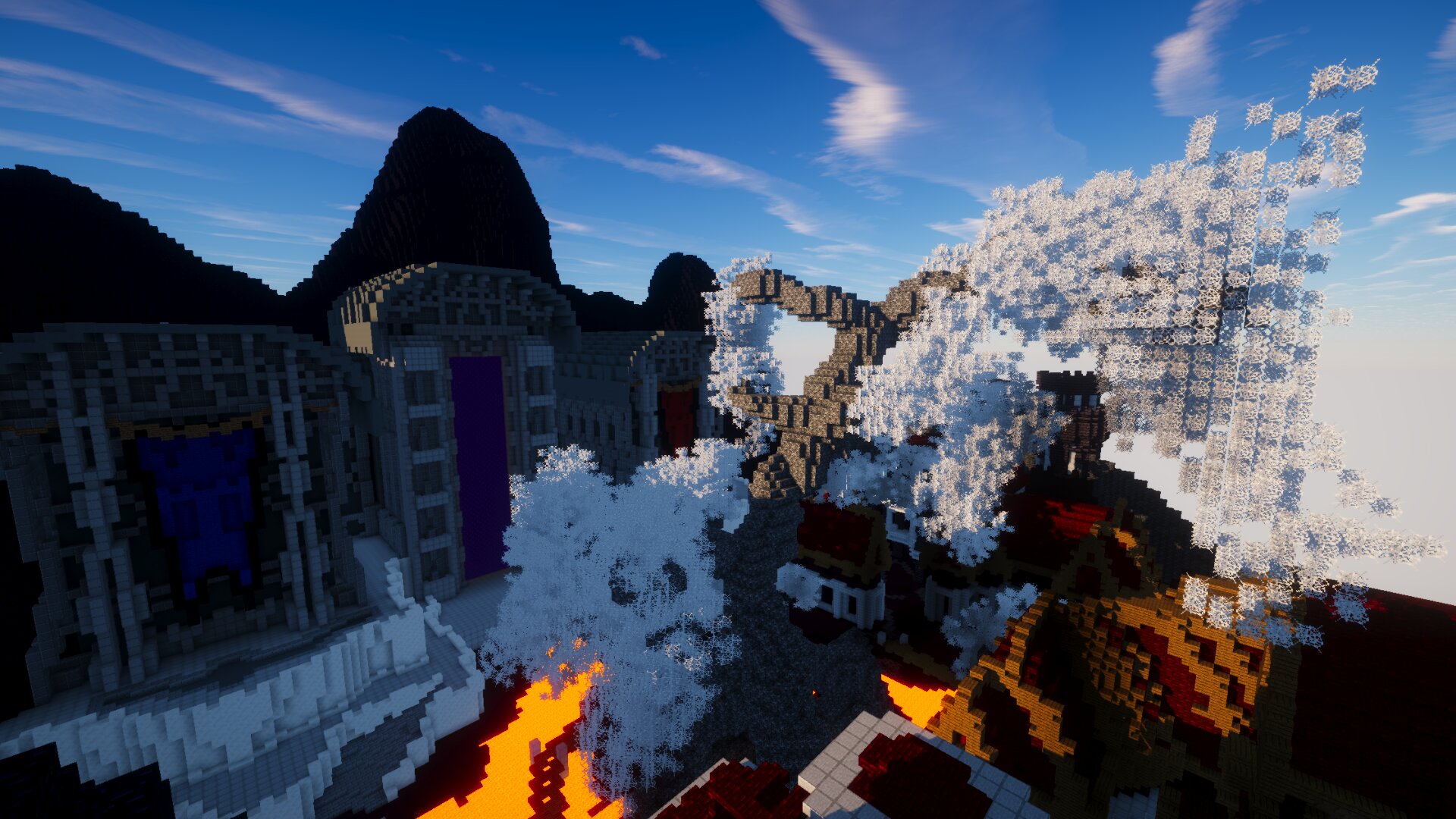 NetherTown | Landscape in the Nether Style - City with huge portal, trees, walls and towers